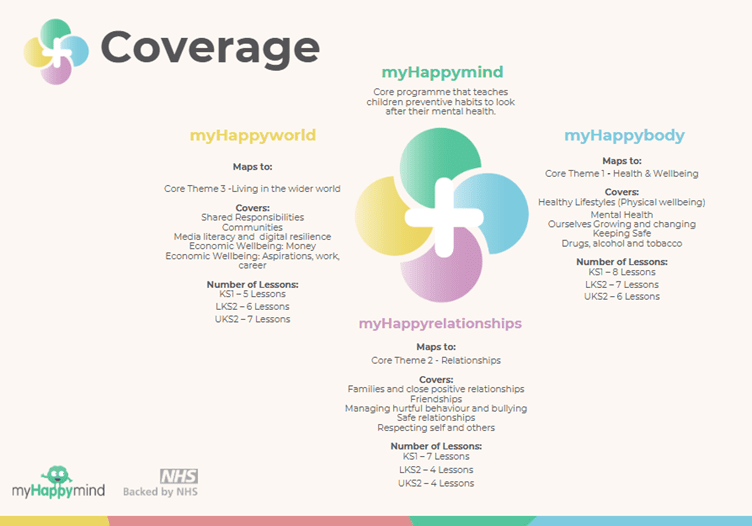 We have chosen the myHappymind programme to ensure that children are taught about their mental health, PSHE and RSE. This is an NHS-backed curriculum in primary schools, secondary schools, and nurseries and is focused on building resilience, self-esteem, and happiness in children.