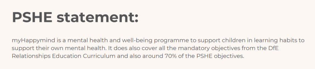 At The Trent Ryland Federation, we have introduced a whole school PSHE scheme called My Happy Mind. This combines PSHE, emotional literacy, mindfulness, social skills and spiritual development.
